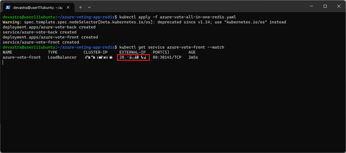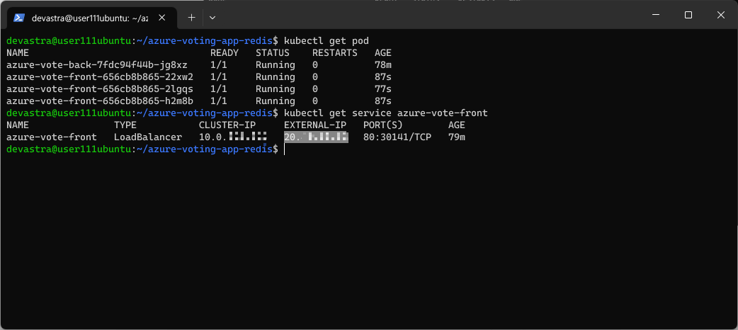 $ kubectl get service azure-vote-front