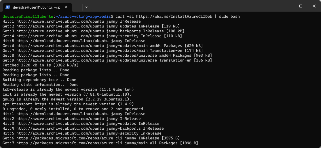 $ curl -sL https://aka.ms/InstallAzureCLIDeb | sudo bash