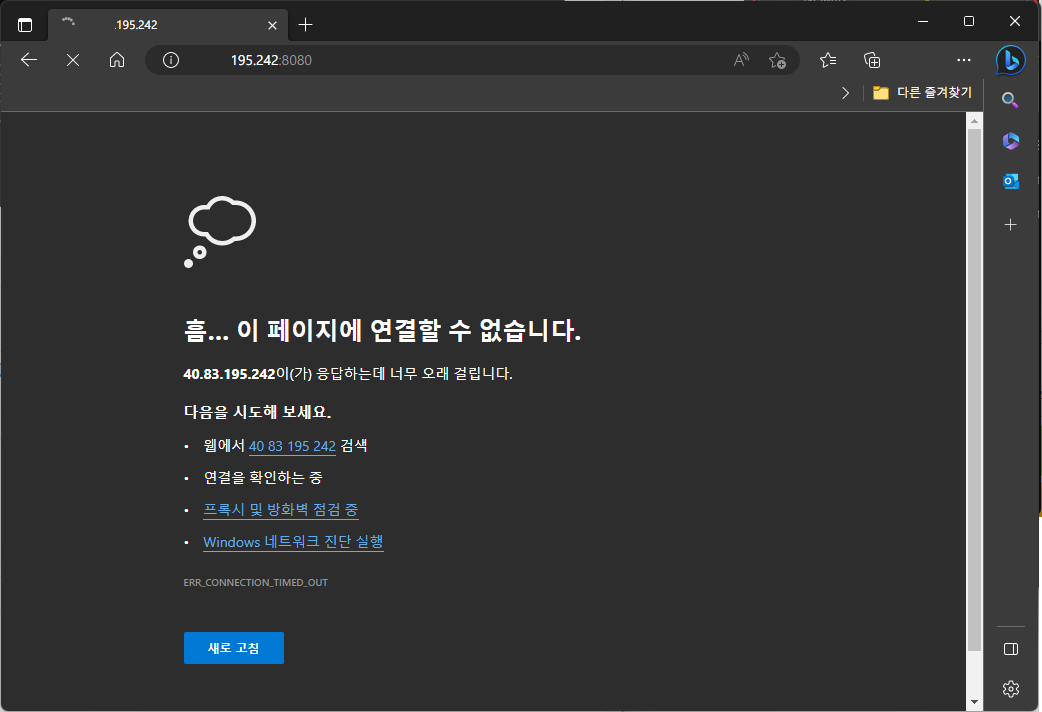 - 복사한 외부 IP 주소를 로컬 PC의 웹 브라우저 검색창에 입력하여 접속한다.
