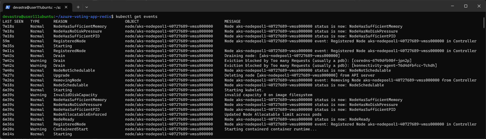 - 다음 명령을 실행하여 기본 네임스페이스에서 업그레이드 이벤트를 확인해본다.