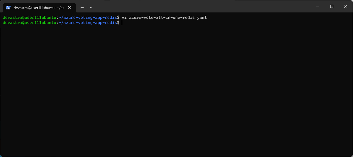 $ vi azure-vote/azure-vote/config_file.cfg