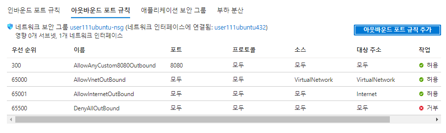 - 아웃바운드 : 가상머신에서 나오는 트래픽
