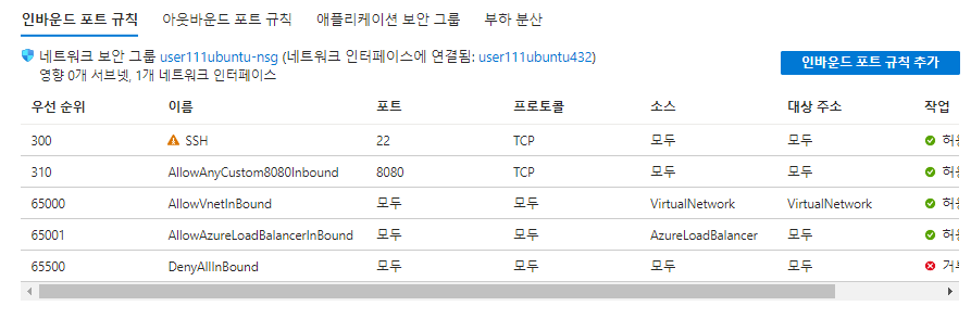 - 인바운드 : 가상머신으로 들어오는 트래픽