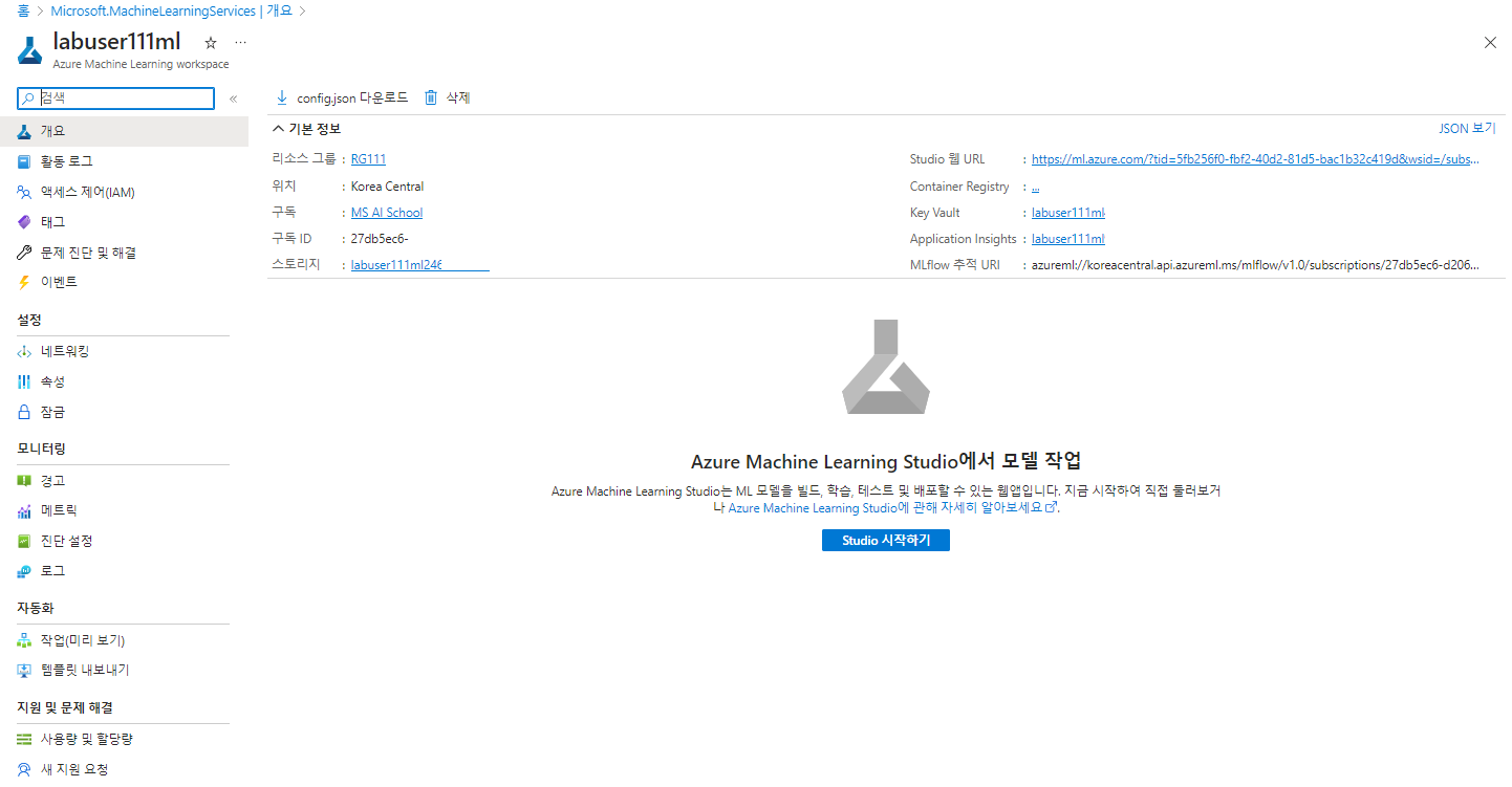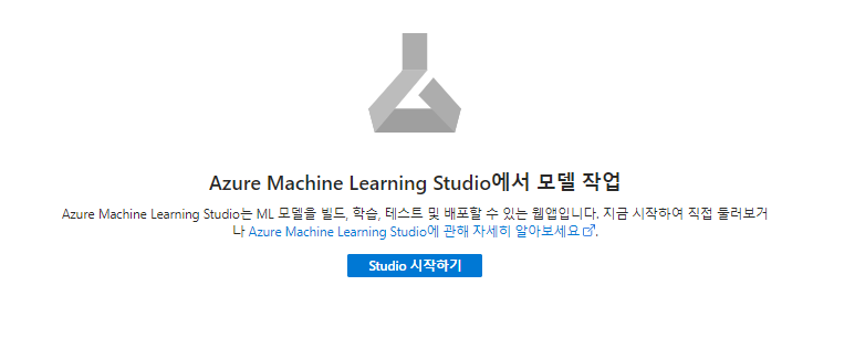 - 별도의 포탈에 진입해야 한다. @[Studio 시작하기]@ 버튼을 누르면 Azure Machine Learning Studio로 진입하게 된다.