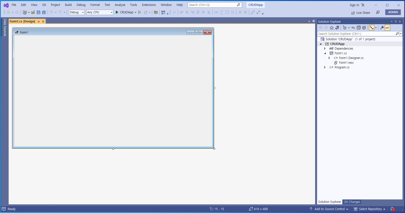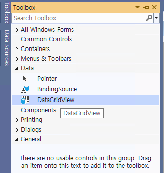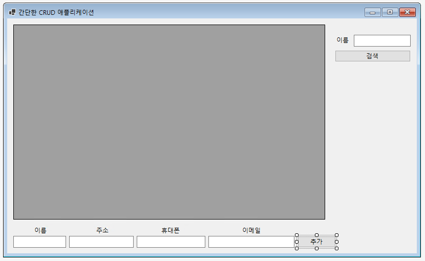 - 다음과 같이 그리드(@DataGridView@)와 버튼(@Button@)을 배치해준다.