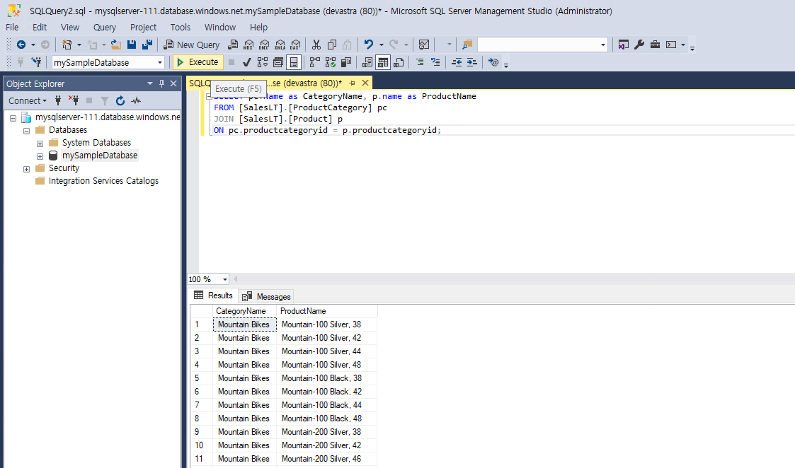 - 설치를 완료했으면, 이제 애저에 배포한 SQL Database에 연결을 해본다.