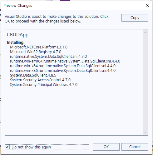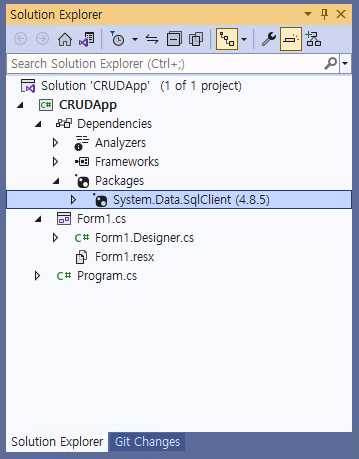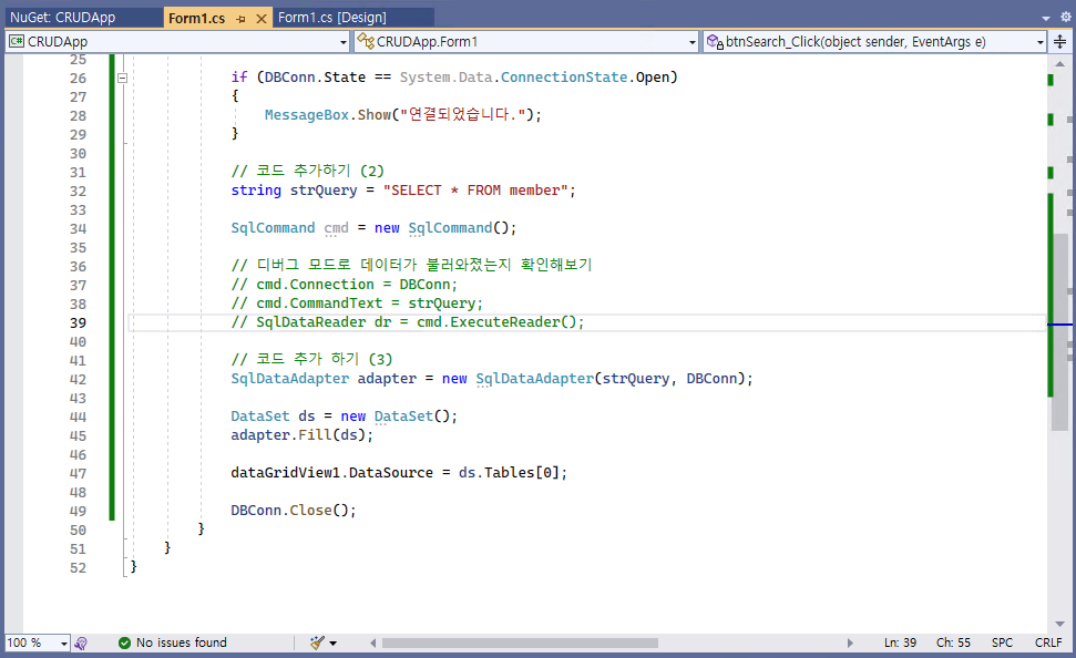 - 코드의 최상단에 다음의 코드를 추가한다. 이 코드는 SQL Server에 접속하기 위한 코드이다.