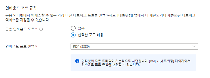 - 인바운드 포트 선택 : RDP
