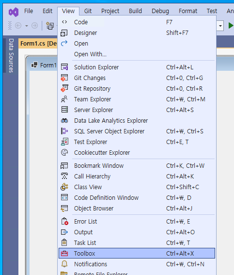 - @[View]@ 메뉴 > @[Toolbox]@를 클릭하여 도구 상자(Tool Box) 창을 열어준다.