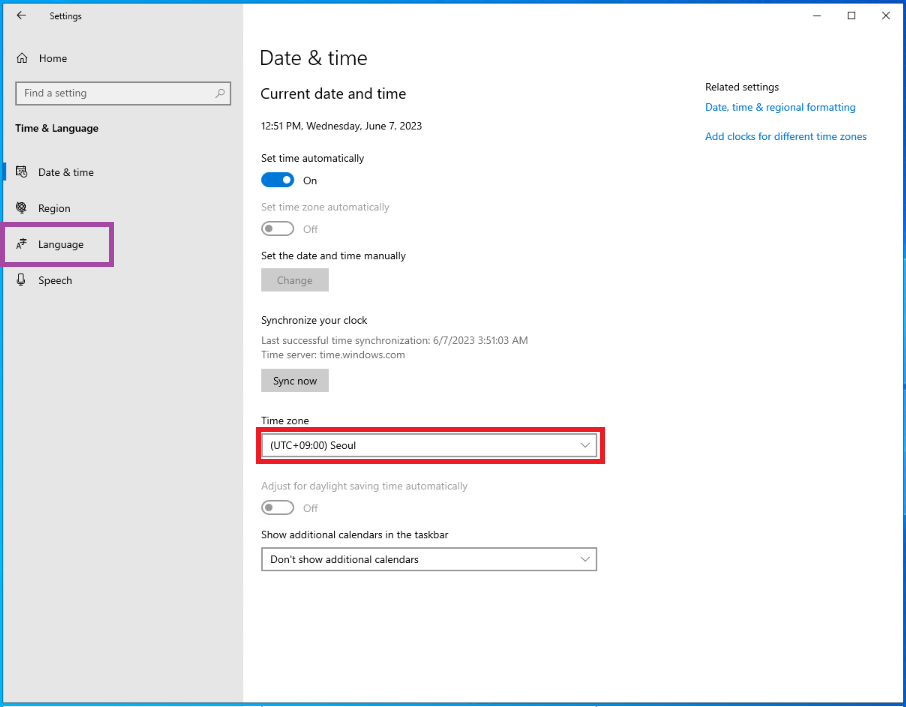 시간대를 한국 시간대로 변경하기