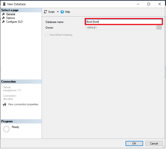새로운 데이터베이스(@BookStore@) 생성하기