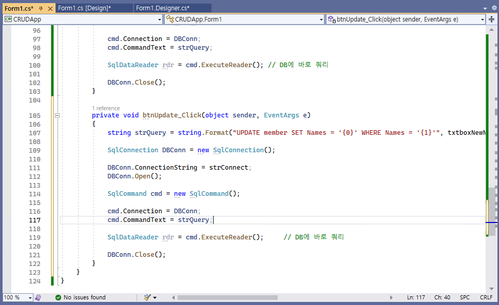 SqlDataReader rdr = cmd.ExecuteReader(); // DB에 바로 쿼리