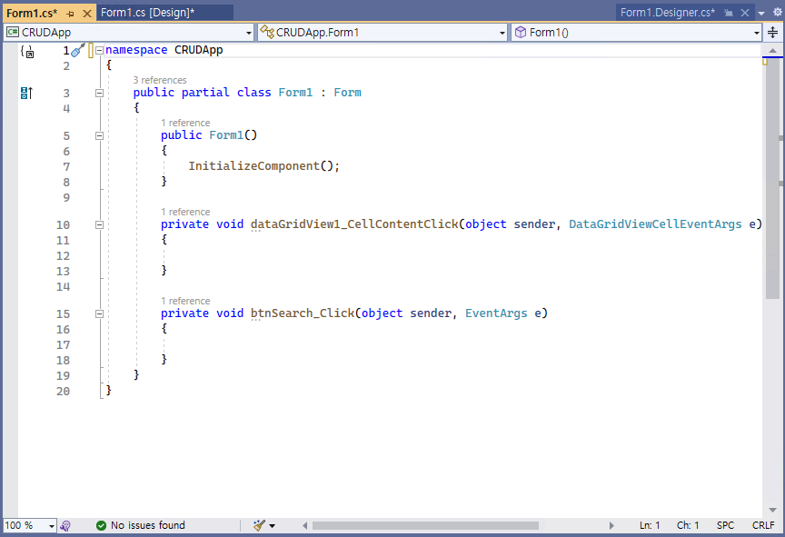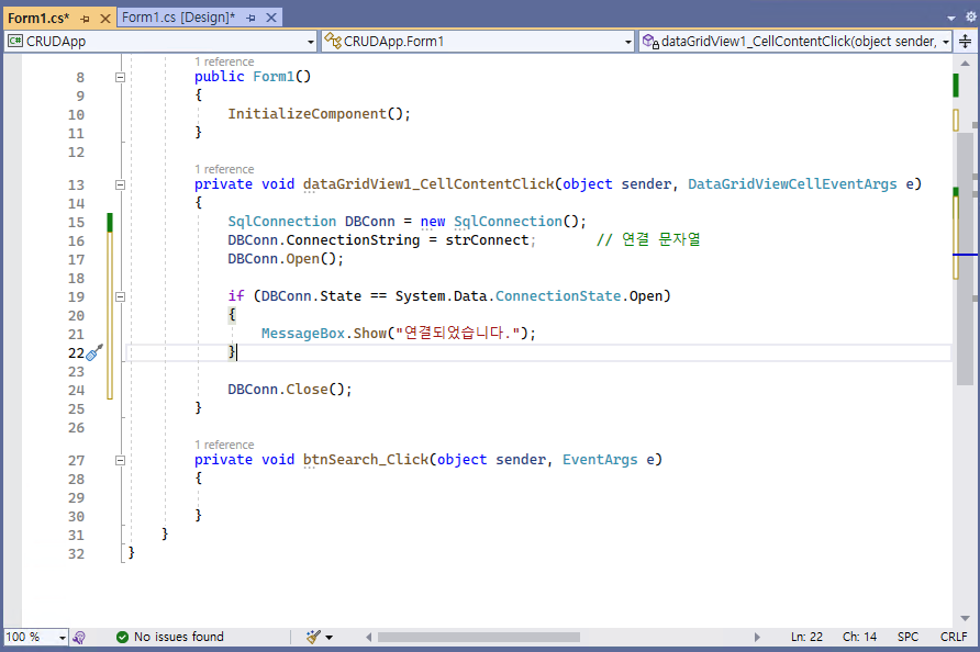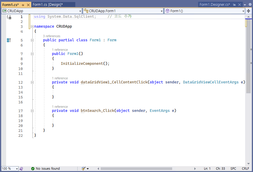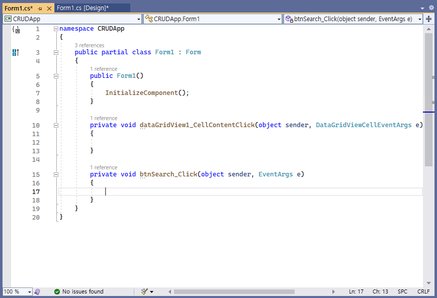 - 버튼(@btnSearch@)을 더블 클릭하여 코드를 작성해나간다.
