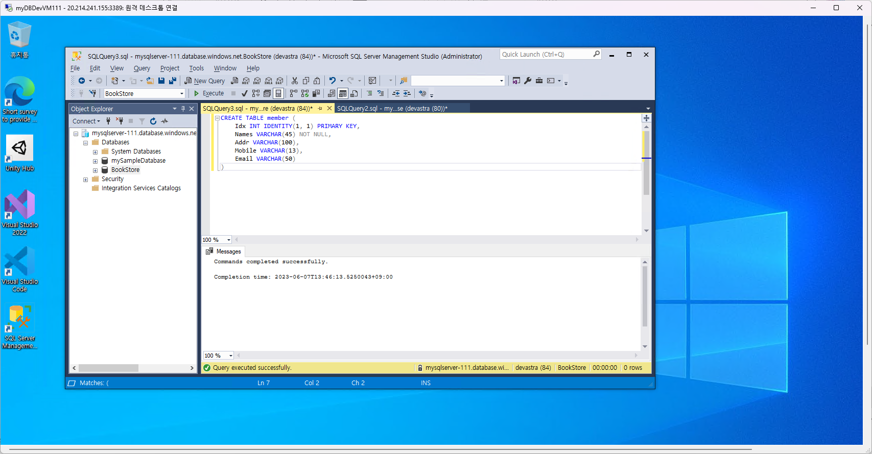 [Azure] SSMS/VS Code를 사용하여 연결 및 쿼리 실습하기