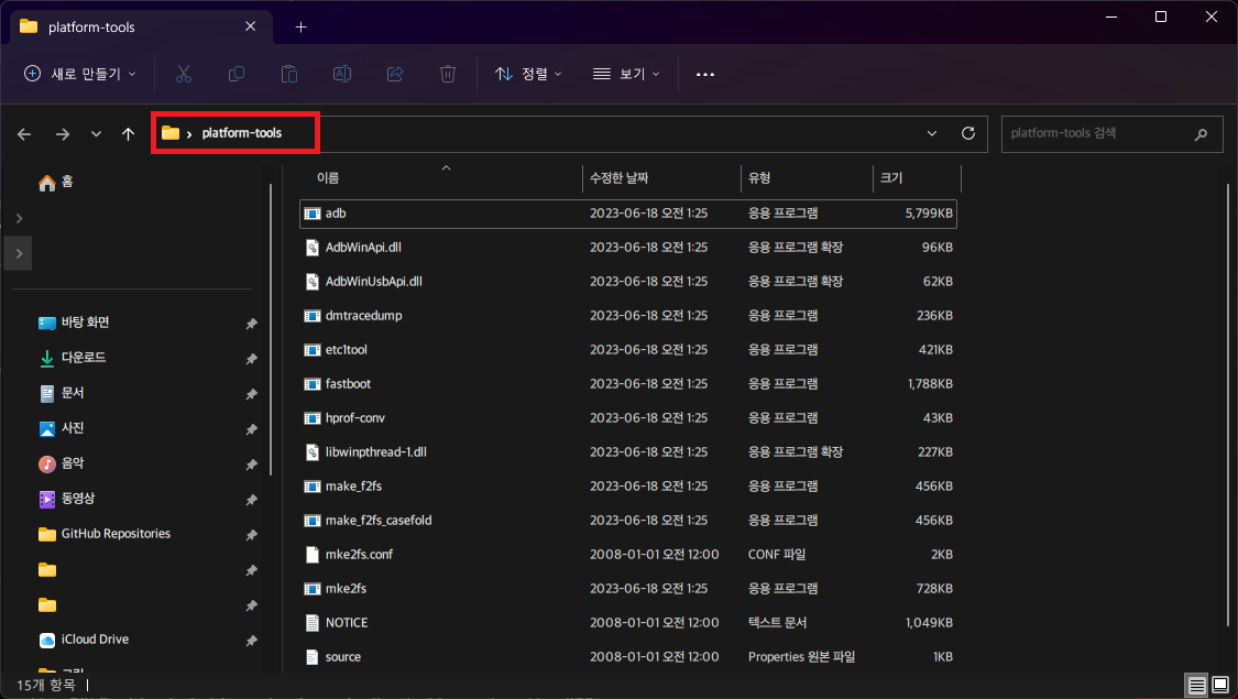 - 우선 아래의 사이트에서 SDK 플랫폼 도구(Platform Tools)를 다운로드 받는다.