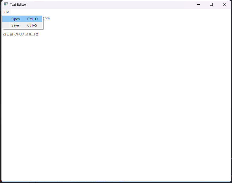 - @QTextEdit@ 위젯을 이용하여 CRUD 기능을 수행할 수 있는 메모장과 비슷한 프로그램이다.