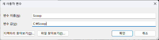 > $env:SCOOP='C:\Scoop' # 프로그램 설치 경로 지정