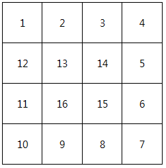 #1 1 2 3 8 9 4 7 6 5 #2 1 2 3 4 12 13 14 5 11 16 15 6 10 9 8 7 |