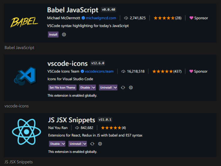 - JS JSX Snippets