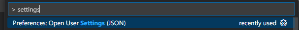 - VS Code에서 @[Ctrl]([Cmd])@ + @[Shift]@ + @[P]@를 눌러서 @Settings@을 검색하여 @[Preferences: Open User Settings (JSON)]@ 항목을 클릭한다.