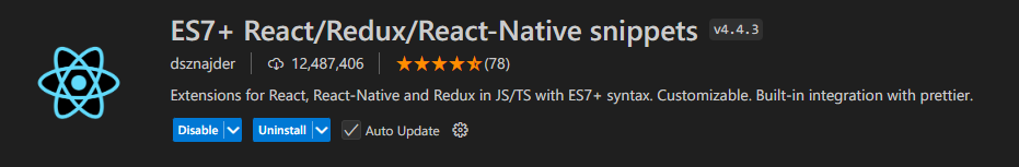 Extension for Visual Studio Code - Extensions for React, React-Native and Redux in JS/TS with ES7+ syntax. Customizable. Built-in integration with prettier.