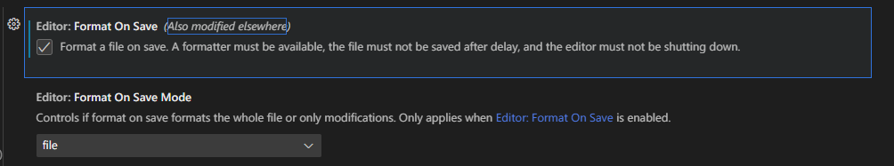 - @Format on save@를 검색한 후, 다음과 같이 체크해준다.