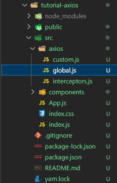 - 프로젝트의 @src@ 폴더 안에 @axios@ 폴더를 만들고, @global.js@ 파일을 생성한다.