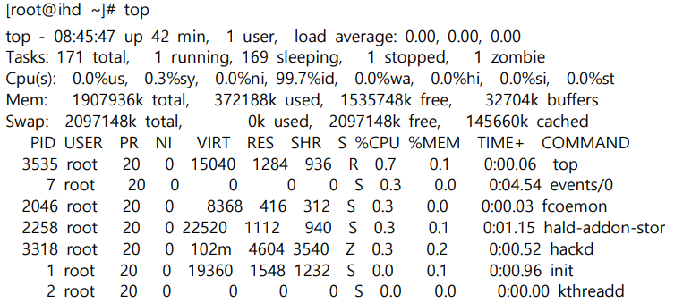 - top 명령을 통해 zombie 프로세스를 확인한다.