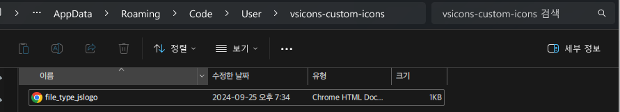 - @C:\Users\kss34\AppData\Roaming\Code\User\@ 경로에 @vsicons-custom-icons@ 폴더를 만들어주고, 안에 커스텀 아이콘 @.svg@ 파일을 넣어준다.