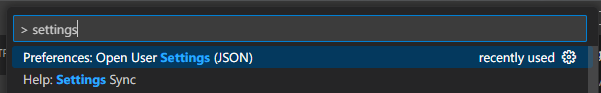 - @settings@ 를 타이핑 한 후, @Preferences: Open User Settings (JSON)@을 클릭한다.
