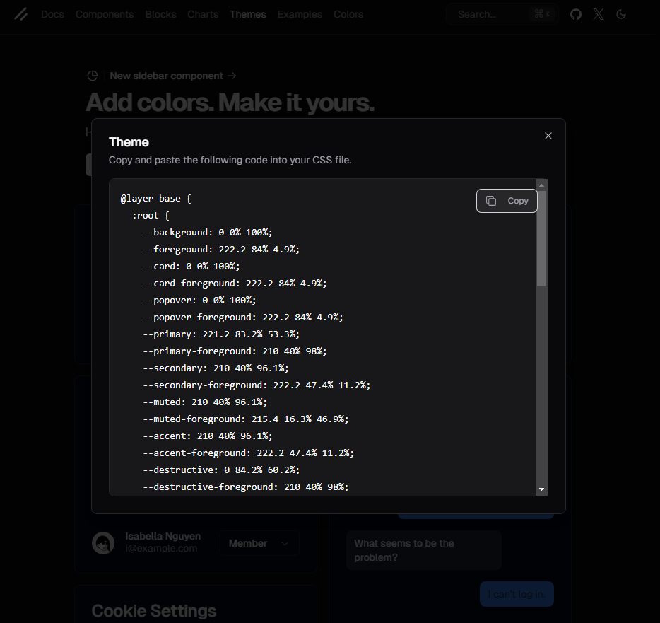 - 아래의 사이트에서 자신에게 맞는 라이트/다크 모드 색상 템플릿을 선택한 후, 색상 코드를 복사한다.