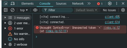 .js 파일에서 Uncaught SyntaxError: Unexpected token '<' 오류 발생할 때 해결 방법 (Vite)