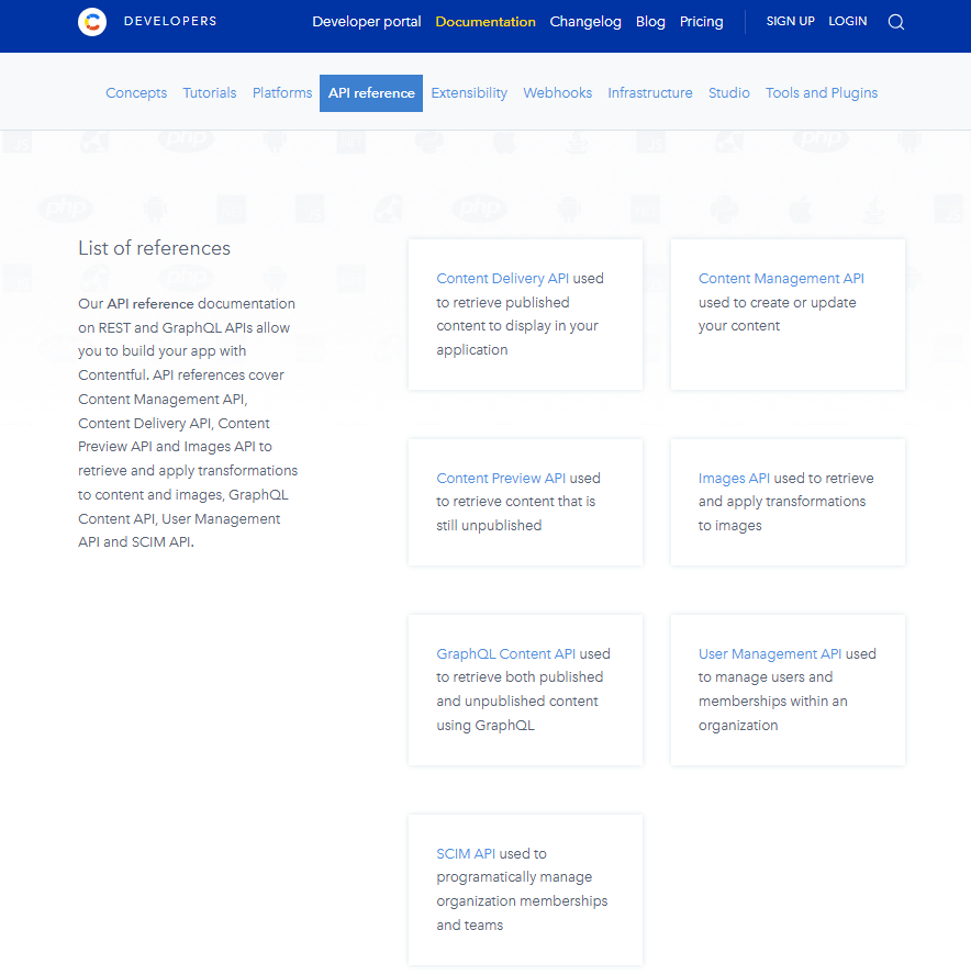 - Contentful에 대한 API 레퍼런스 문서는 아래의 링크를 참고한다.
