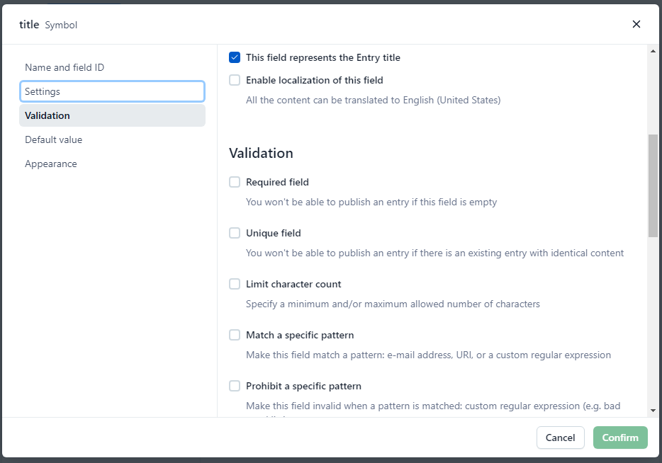 - 추가적으로 유효성 검증(Validation), 기본값(Default Value), 모양(Appearance) 등 필드에 대한 설정을 해준다.