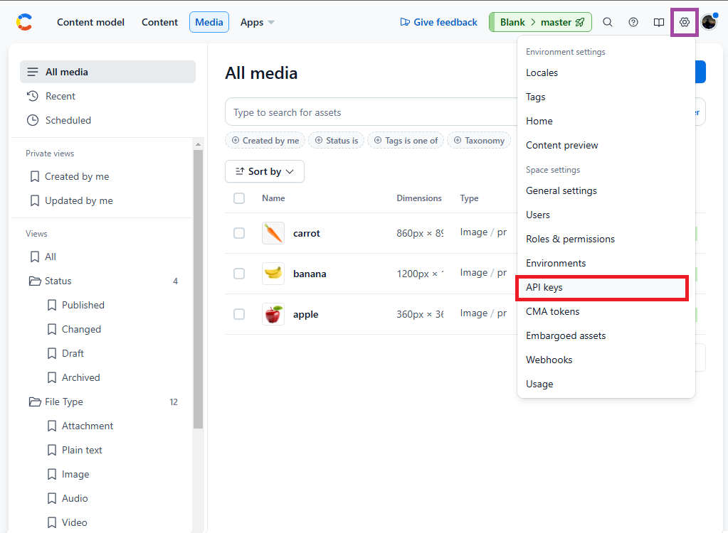 5️⃣ Space ID와 API Key 값 확인 및 가져오기