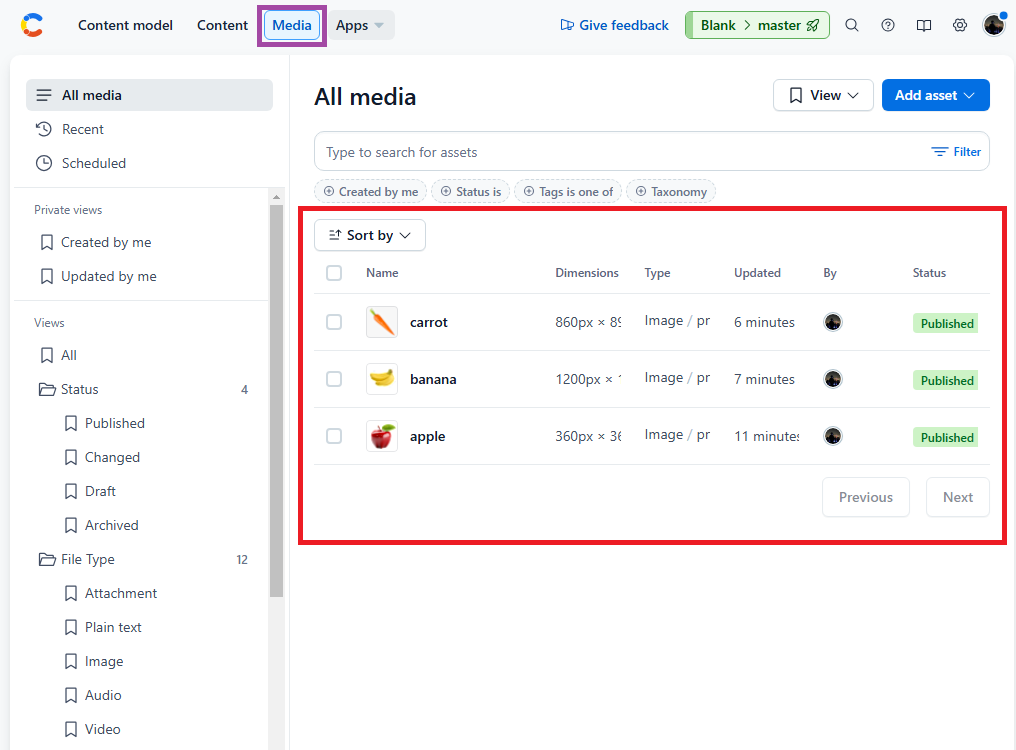 - 엔트리를 만들면서 업로드 했던 이미지들은, 상단의 @[Media]@ 탭에서 확인할 수 있다.