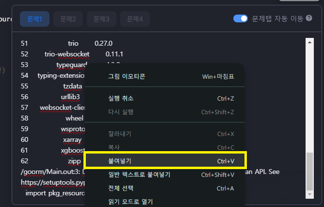 4️⃣ 시험장 환경에 설치된 패키지 목록과 버전 확인하기
