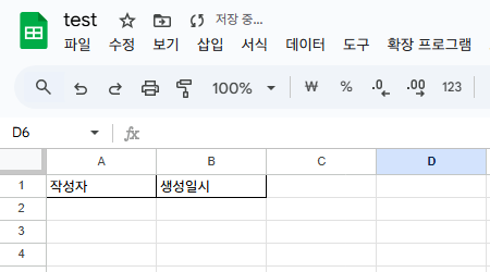 - 그리고 A1부터 필요한 만큼까지 테이블 헤더를 적어준다.