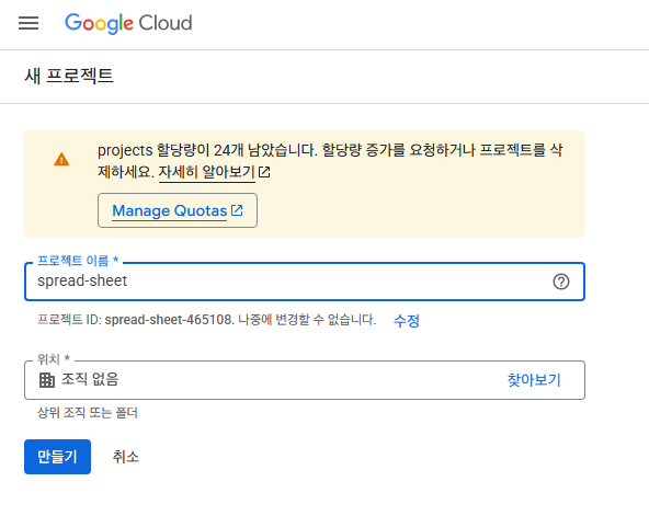 ① Google Cloud Console에서 새로운 프로젝트 생성하기