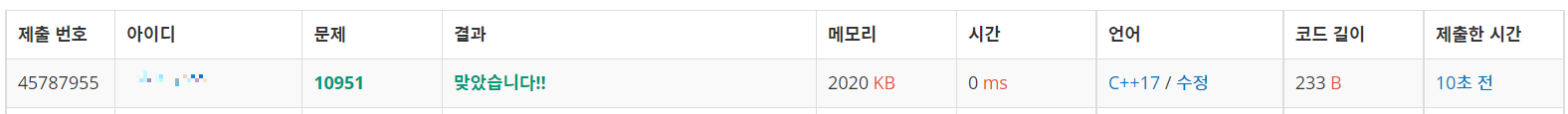 | [BOJ-10952][C++] A+B - 5 (0) | 2022.07.09 |